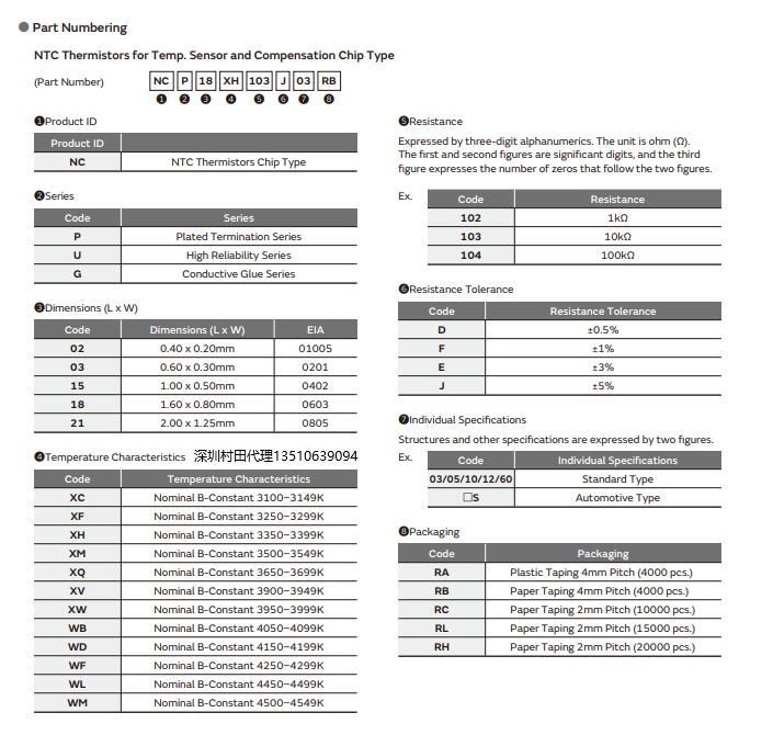 村田热敏电阻NCU18XH103F6SRB命名规则