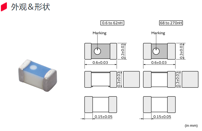1005:公制标准,长1.0±0.15mm,宽0.5±0.15mm,高0.5±0.15mm,直径0.25±0.1mm。