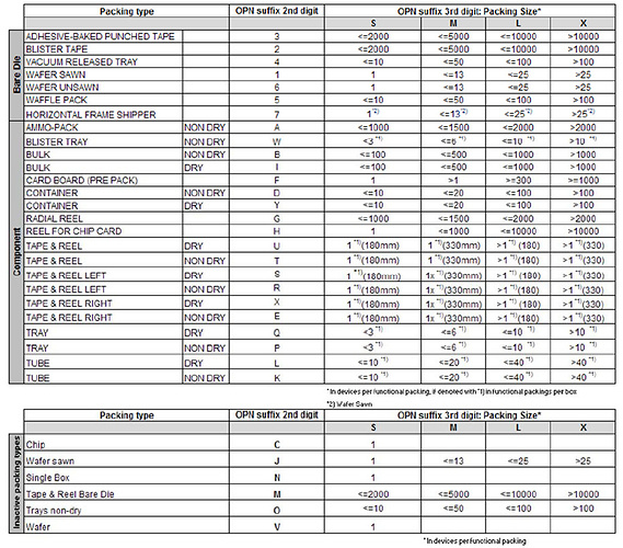 - OPN后缀首位字母A表示产品是含卤素的,B表示产品是不含卤素但非RoHS合规的,C表示产品未定义,D表示产品既不含卤素也不RoHS合规,N表示产品既含卤素也不RoHS合规,E表示产品未定义,而X表示产品既不含卤素也RoHS合规并且完全无铅。