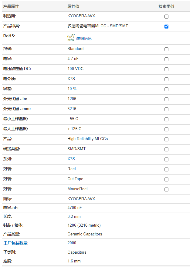 强烈推荐:京瓷贴片电容CM316X7S475K100AT ,1206 X7S 100V 4.7UF 10%精度可代替村田